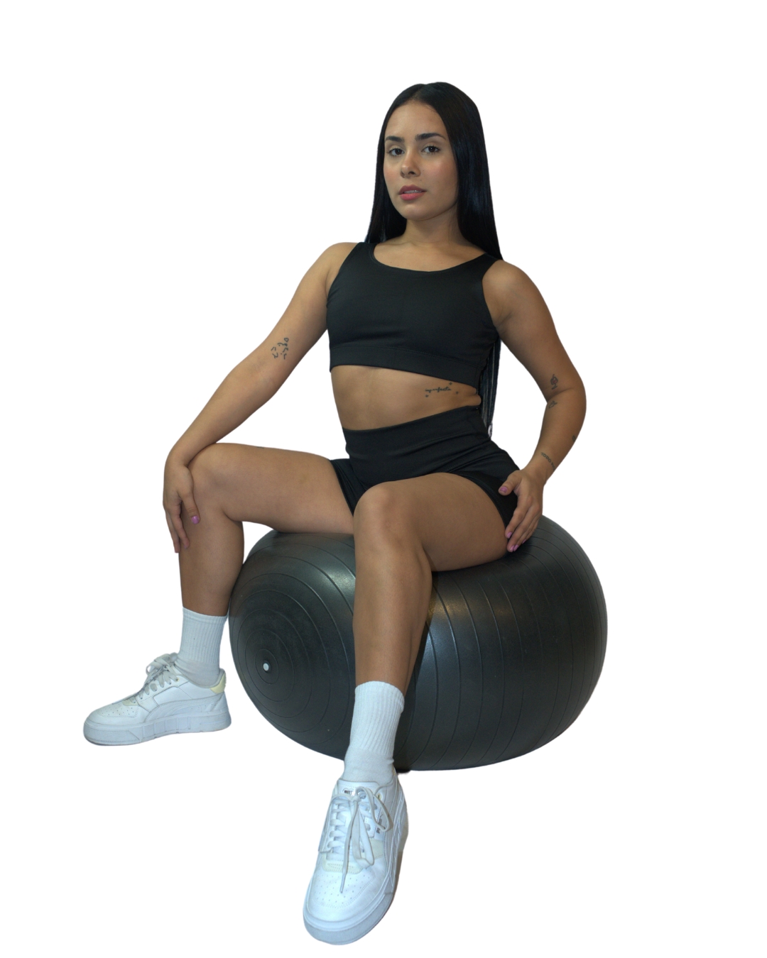 Top con escote redondo y elástico para mayor agarre y comodidad.
